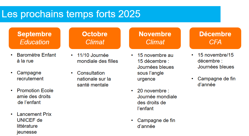 Pour mieux planifier votre année, les temps forts de l’éducation aux droits de l’enfant et de l'engagement jeune sont réunis dans l’Agenda myUNICEF 2025.