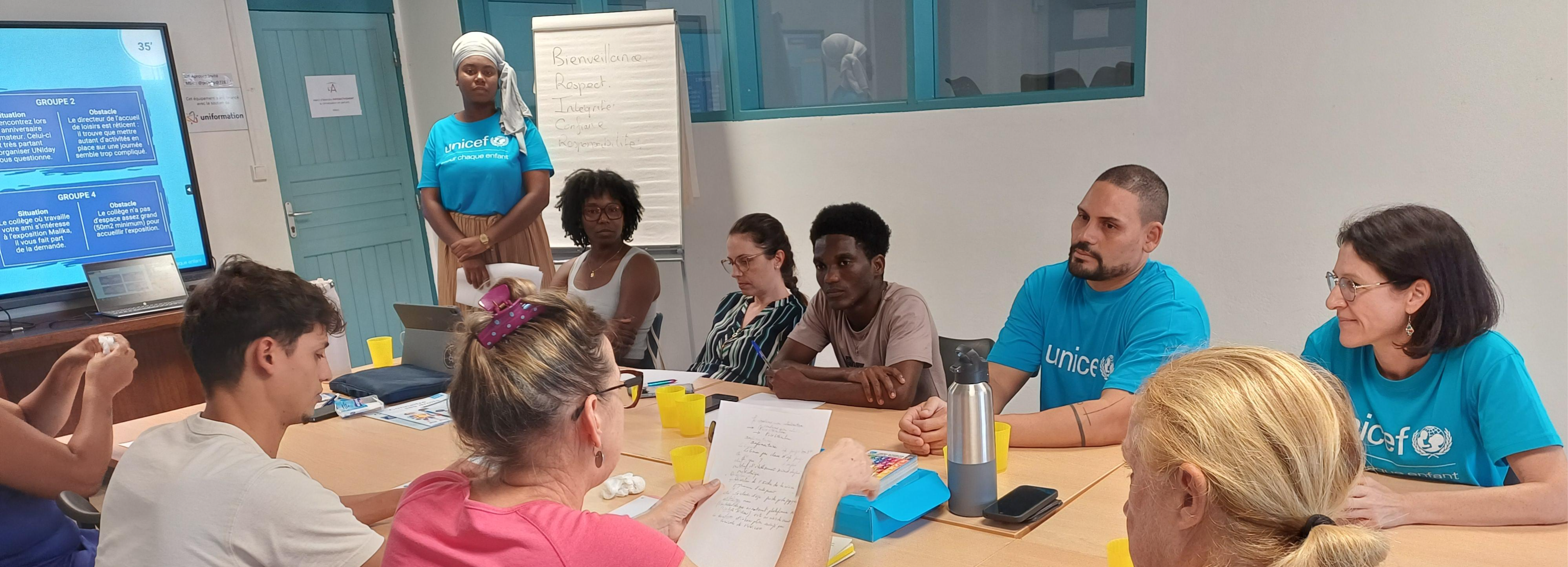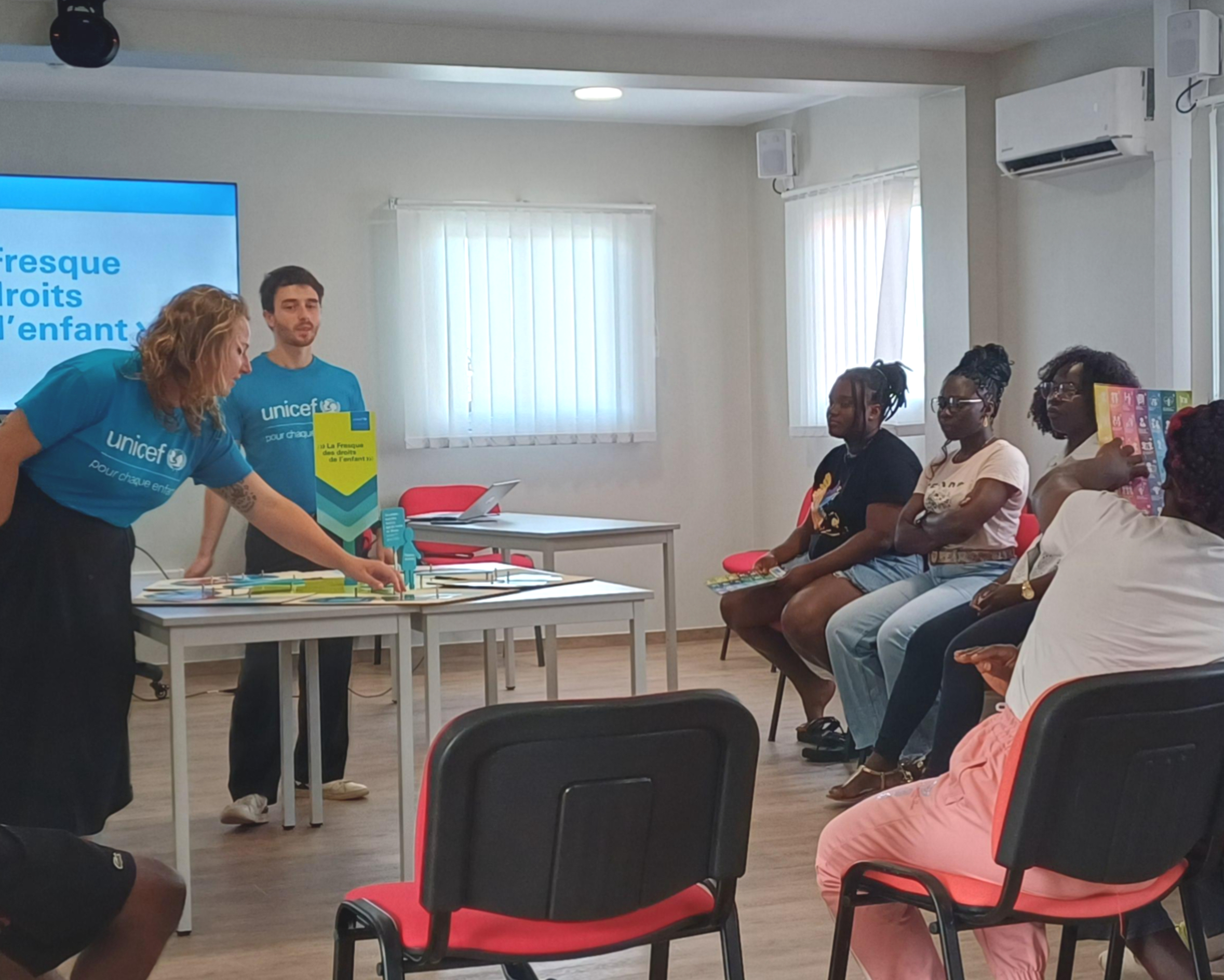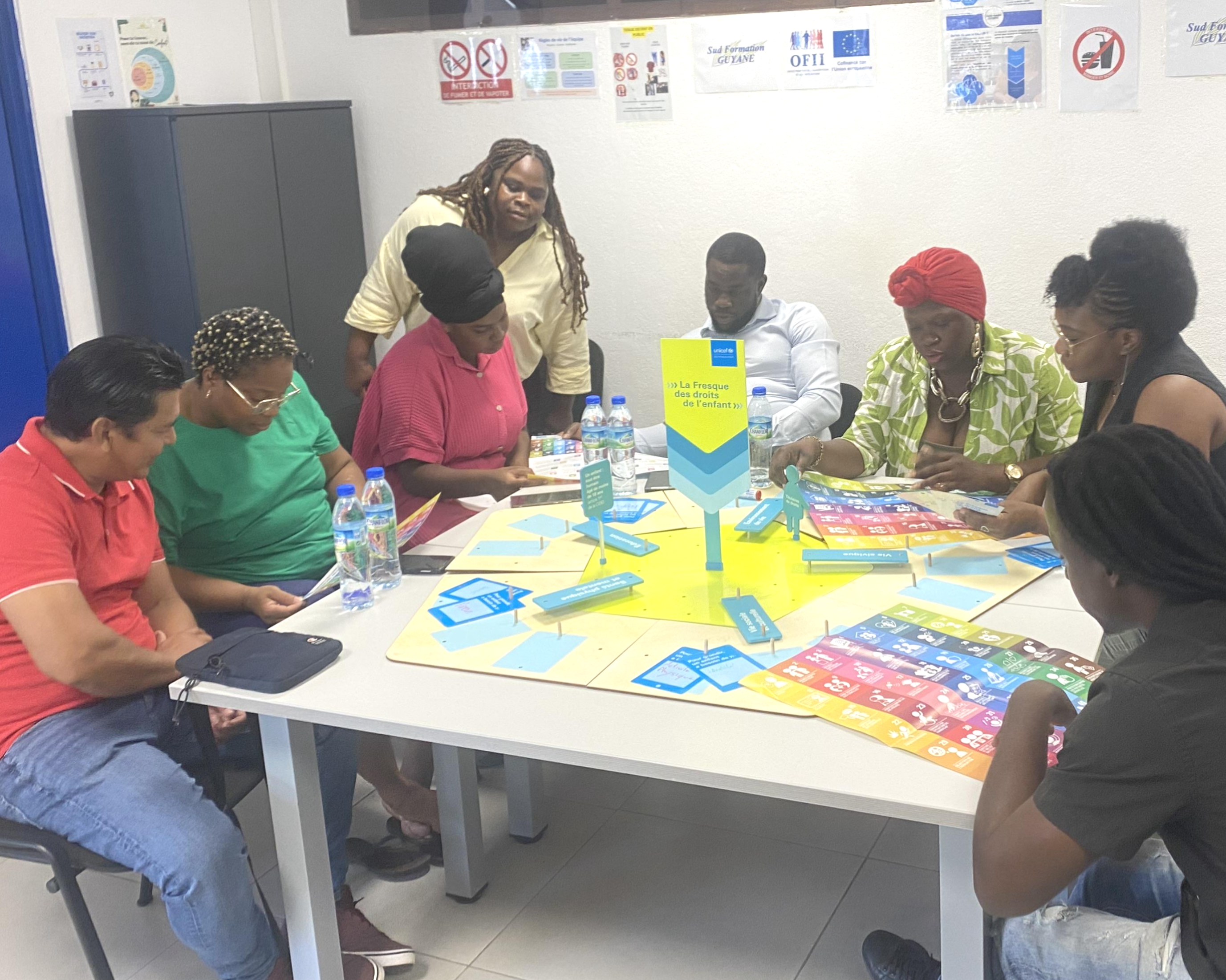 En Guyane, la question du faire-faire est centrale : le jeune comité UNICEF doit s’associer au monde éducatif et associatif local pour répondre aux besoins du territoire en termes de sensibilisation et formation. À Cayenne et à Saint-Laurent du Maroni, l’équipe de formateurs a expérimenté à plusieurs reprises un nouveau déroulé permettant de sensibiliser les professionnels aux droits de l’enfant et de les encourager à s’engager eux-mêmes sur ce sujet essentiel.