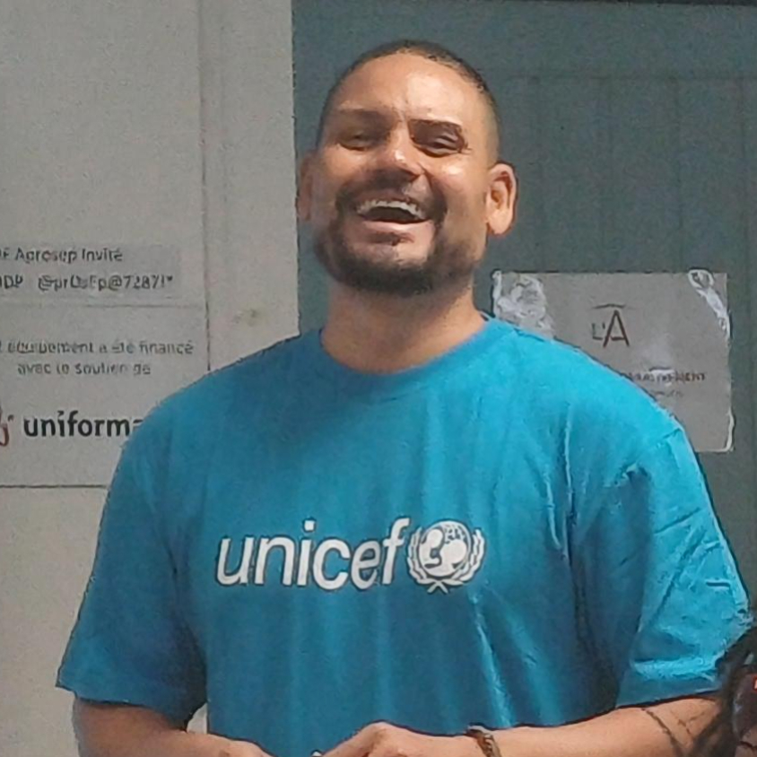 « Depuis mon retour en Guyane il y a un peu plus de deux ans, je recherchais une expérience profondément enrichissante, et m'engager comme bénévole pour l'UNICEF a totalement répondu à cette quête. J'ai eu l'opportunité d'animer des ateliers éducatifs et de sensibiliser jeunes et moins jeunes aux droits des enfants. Ces moments sont empreints d'émotion, car voir leur curiosité et leur enthousiasme me rappelle l'importance de notre mission. » - Jean-Noël Chrétien, formateur SDE en Guyane