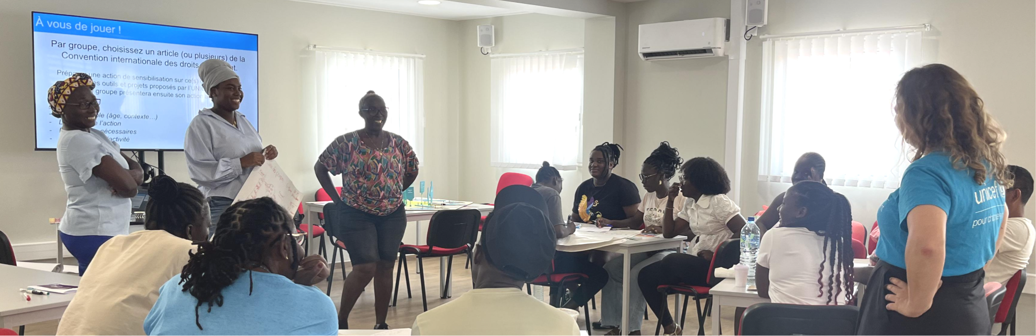 - Contribuer à la construction et l’autonomisation du comité UNICEF Caraïbes par la mise en œuvre de formations de formateurs SDE, d’animateurs de la Fresque des droits de l’enfant et de chargés de sensibilisation ;