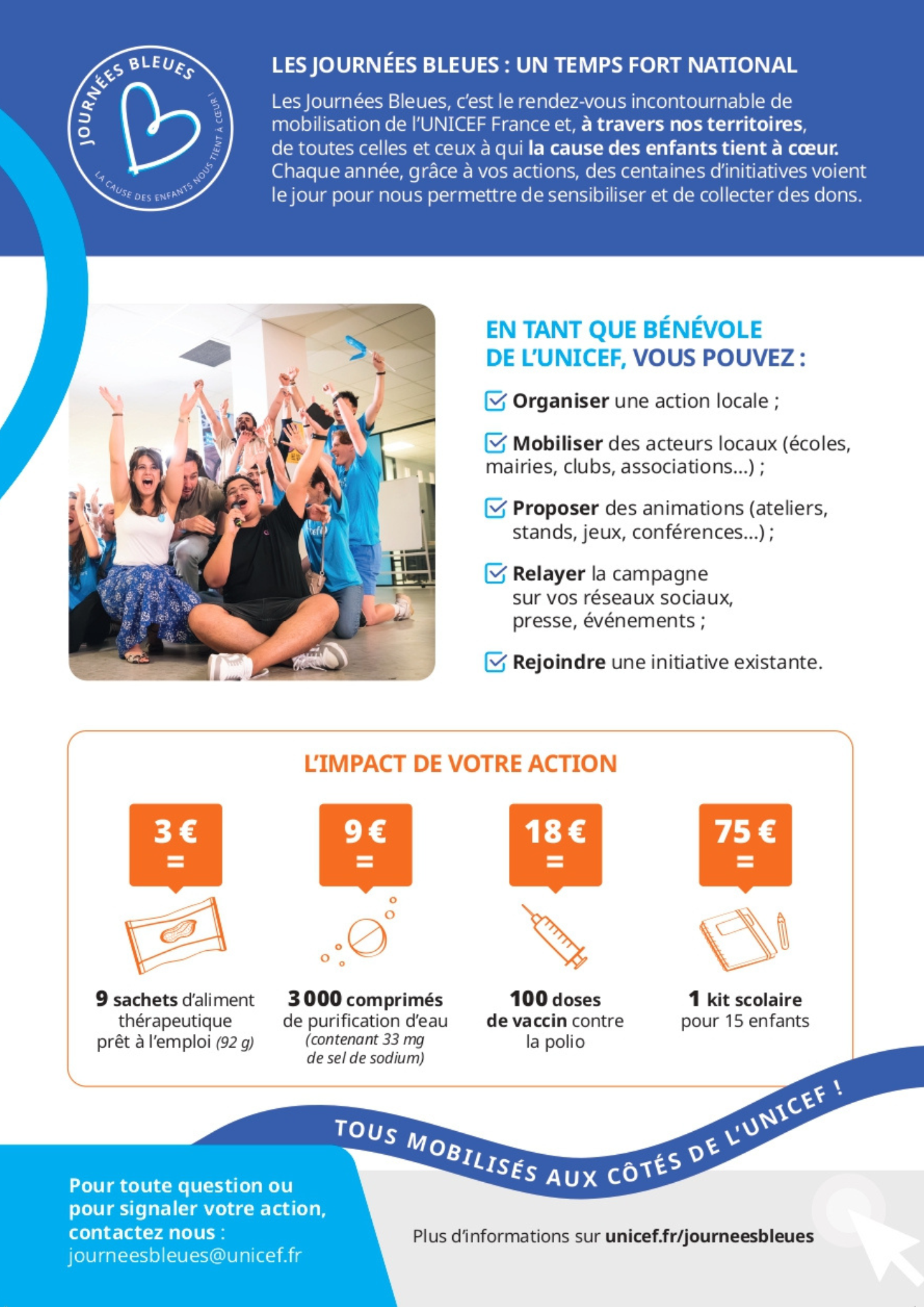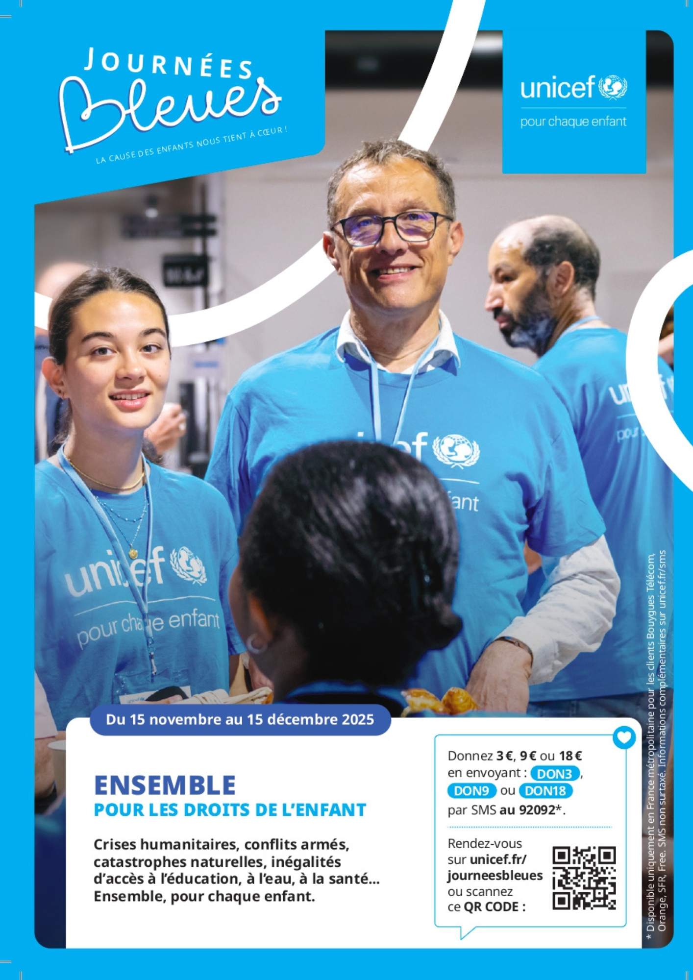 Du 15 novembre au 15 décembre, mobilisons toutes celles et ceux à qui la cause de l'enfance tient à cœur à l'occasion des Journées bleues de l'UNICEF !