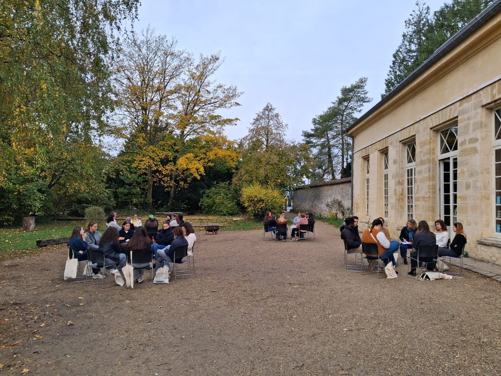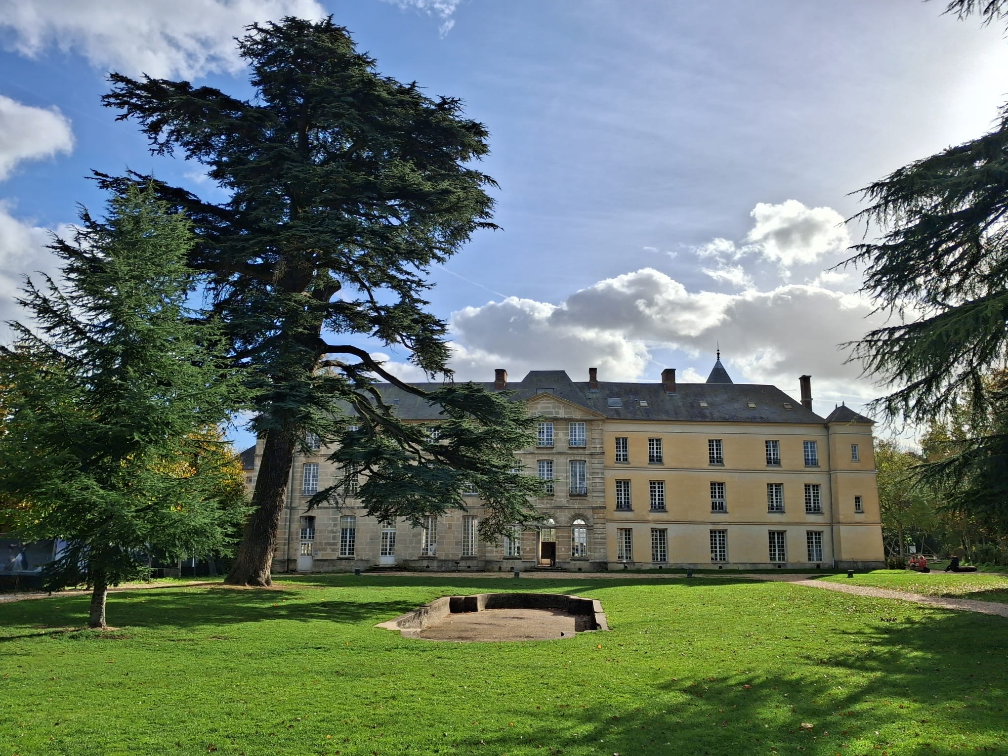 Après une bonne heure de car, les paupières lourdes de fatigue, le réveil a sonné trop tôt, nous arrivons sur place et découvrons un site merveilleux, le château de Jambville.