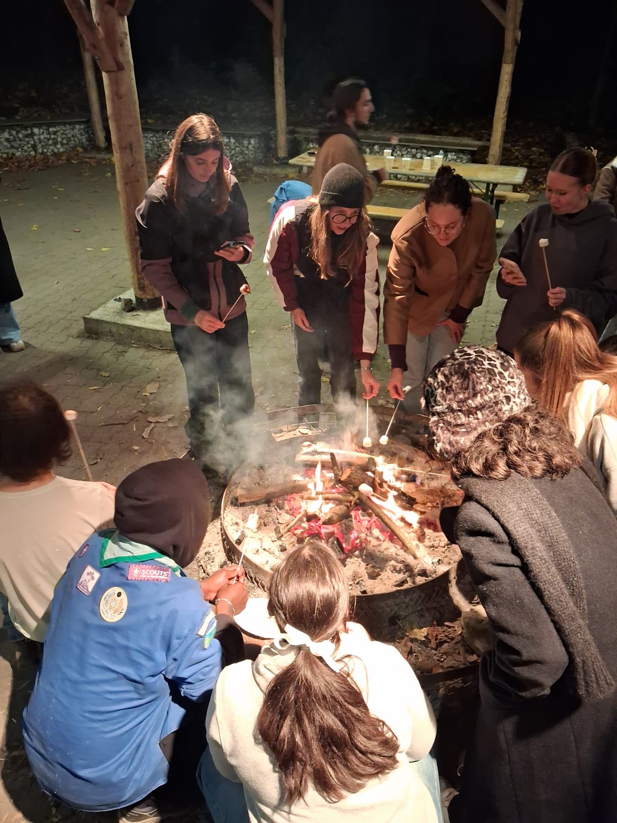 Tandis que d’autres étaient partis en balade pour découvrir les animaux de la forêt qui longe et déborde dans les plus de 50 hectares de ce magnifique site, certains sont partis se coucher et la dernière partie des participants étaient toujours réunis au coin du feu à discuter et encore mieux... une partie de loups garous (de Thiercelieux) animé par Yasmine (VSC) !
