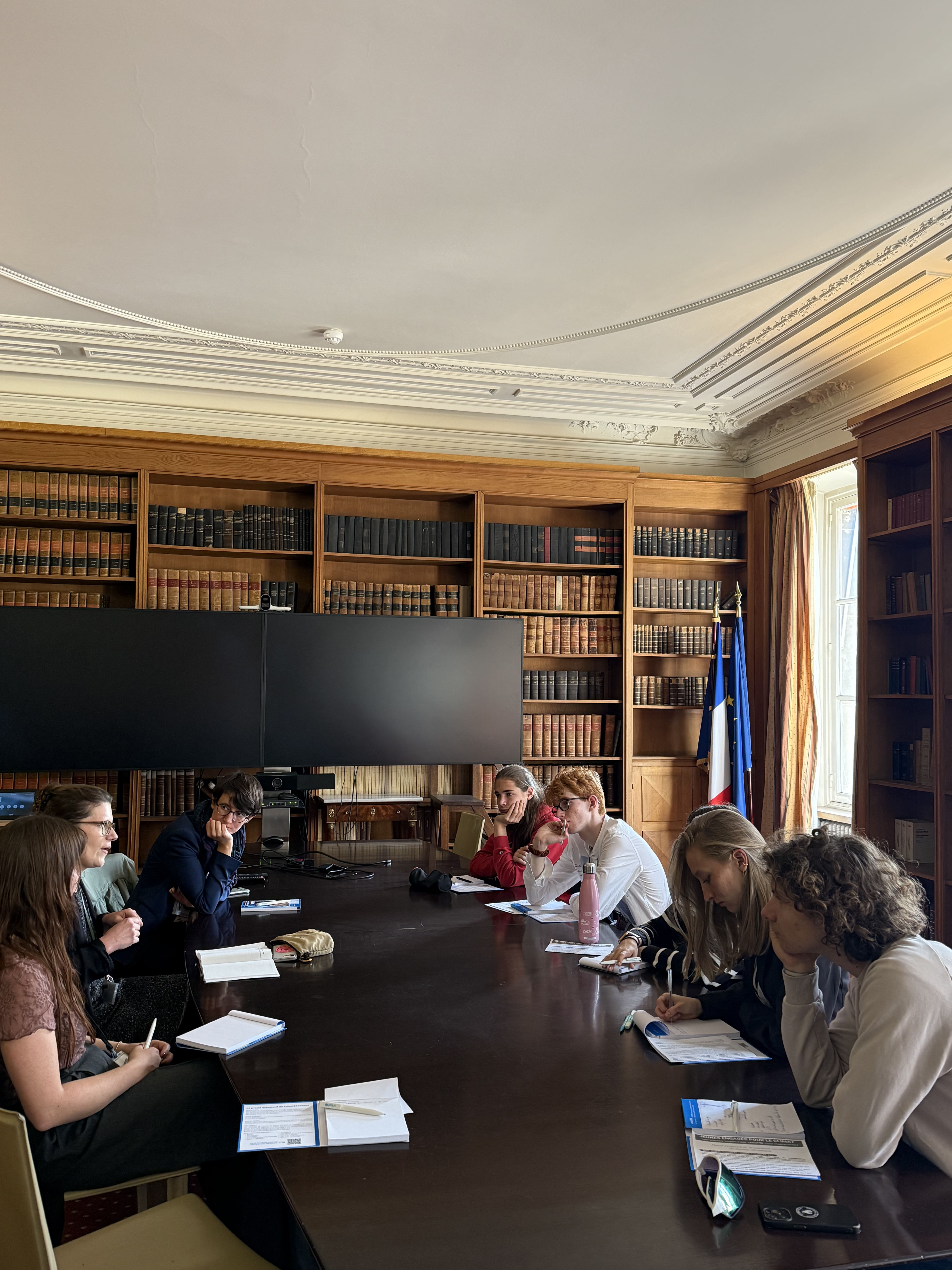 À peine sortis de l'Assemblée, nous avons pris la direction du Quai d'Orsay pour un rendez-vous plus informel au ministère des Affaires Étrangères avec Charlotte Lerat, ancienne coordinatrice de l’équipe française de négociation climat en appui de l’Ambassadeur Climat. Cet échange, centré sur les enjeux des COP (Conférences des Parties), a été particulièrement enrichissant. Nous avons reçu de nombreux conseils précieux, notamment en vue de nos futures actions et un de notre grand objectif : la COP30 (où vont se rendre deux de nos membres).